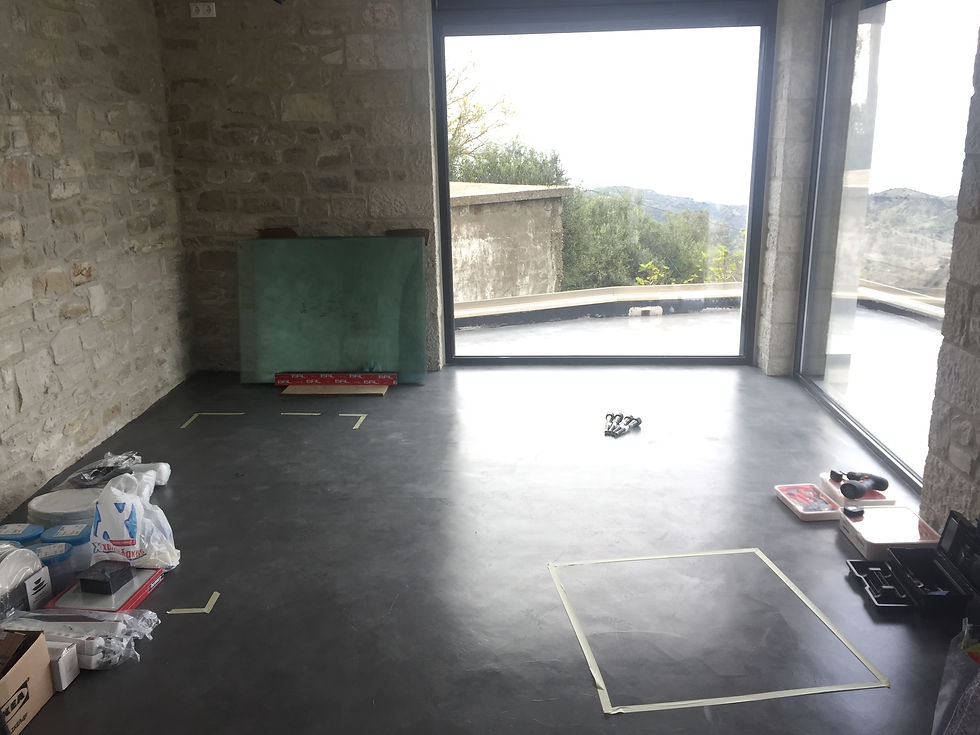 Hier tapen we de vormen van de meubels op de grond om een idee te krijgen van welke meubels we moeten kopen.